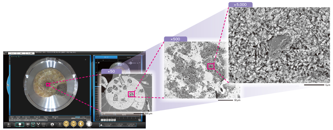 即使是非导电样品,如吸水聚合物和掩模,也可以通过使用低真空功能进行观察,无需预处理。