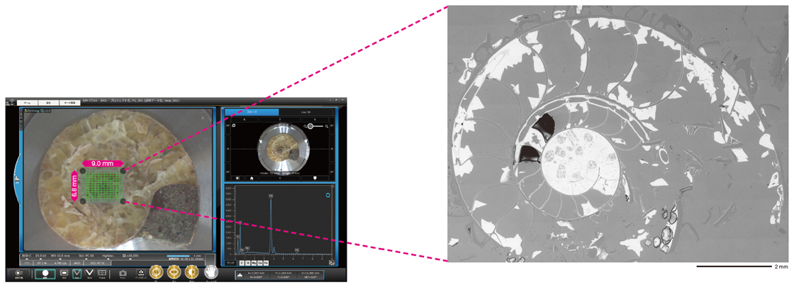 样品:菊石化石<加速电压:7 kV,信号:背散射电子
