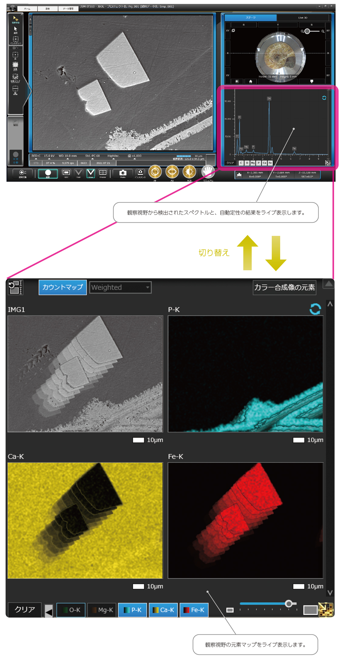 实时分析是一种始终显示特征 X 射线光谱和元素图的功能。