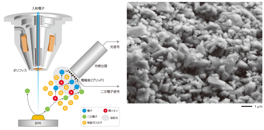 通过检测二次电子与残余气体分子碰撞时产生的电子和激发光,即使在低真空下也可以获得不均匀信息。
