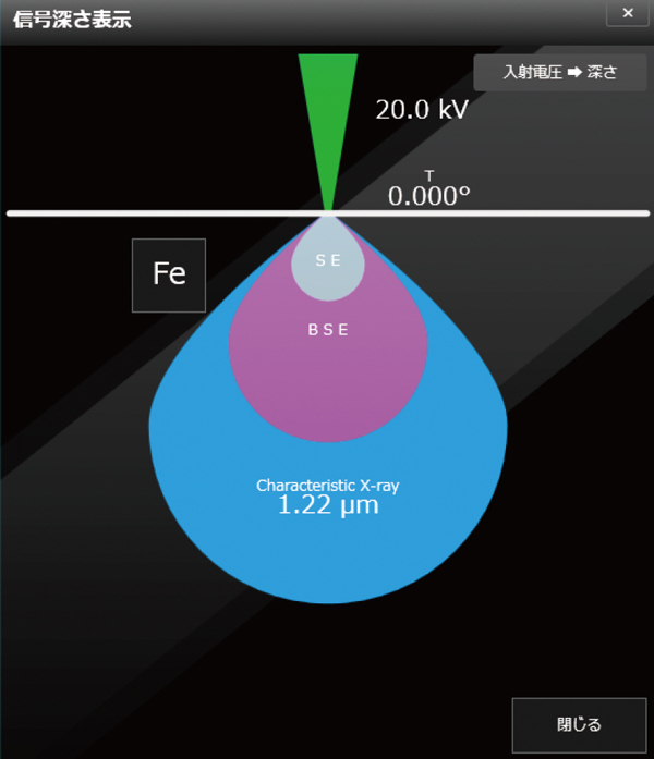 信号深度显示功能内置于 SEM GUI 中,可让您立即了解正在测量的样品的分析深度(近似值)。对元素分析有效。