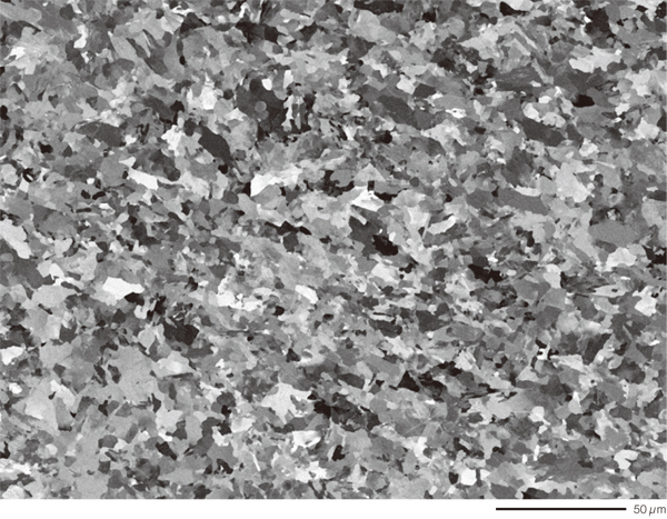 样品:高强度钢板横截面加速电压:5 kV 放大倍数:×500 信号:背散射电子
