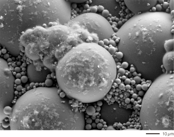 您可以使用二次电子图像观察聚合物颗粒的形状。