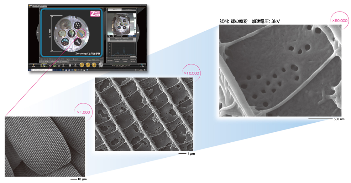 通过使用低真空功能,无需进行导电处理即可观察绝缘体。通过在物镜附近抽真空,低真空模式下的图像质量得到了极大的改善。