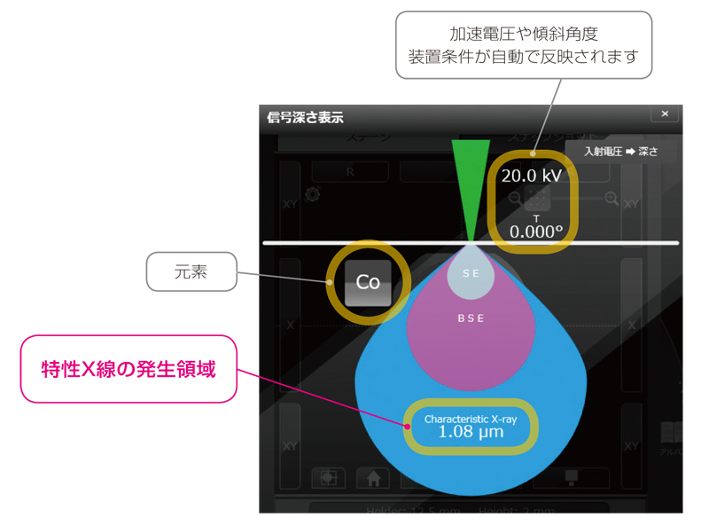 新开发的信号深度显示功能被纳入SEM GUI中,让您立即知道被测样品的分析深度(近似值)。
