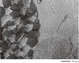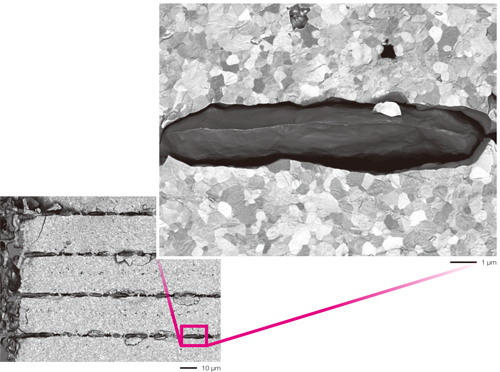 加速电压:7 kV信号:低真空背散射电子放大倍数:×300(左)×3,000(右)
