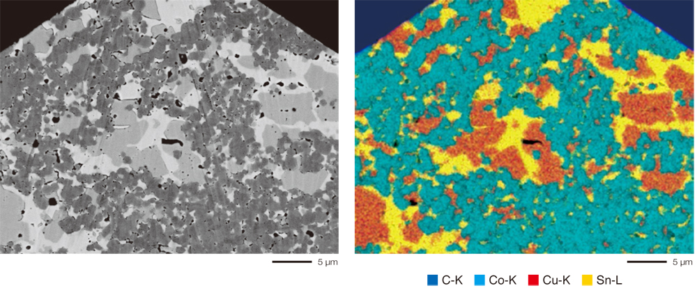 加速电压:15 kV 信号:背散射电子(左)EDS 图(右)放大倍数:×3,000