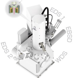 由于是一体化产品,可插入多根管子,在凹凸不平的样品上无阴影,甚至易受电子束损伤的样品也能加速且无损伤!