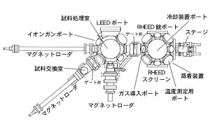 配备多端口样品处理室,可在超高真空下进行蒸发、气体导入、MIED、RHEED 观察等样品预处理。