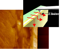 观察薄膜样品的横截面时,尖端会在边缘掉落,所以直到现在我还担心尖端损坏。 Z限制器功能通过设置高度跟踪范围来保护探头免受与样品表面的碰撞。