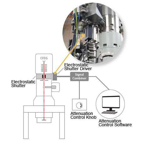 静电剂量调制器 (EDM) 是一种快速光束消隐系统,带有预采样静电偏转器,包括电子设备和软件控制。 EDM 还可以减弱电子照明而不影响成像条件,使 TEM 和 STEM 用户能够更好地控制样品的剂量。可选同步升级将 EDM 的定时和同步功能提升到一个新的水平。 Synchrony 可以与 STEM 控制器协调,在扫描样品时跟踪探测光束的位置。 EDM 快如闪电的静电消隐可在每个像素处将光束打开指定时间,或保持光束消隐以完全排除剂量敏感区域。