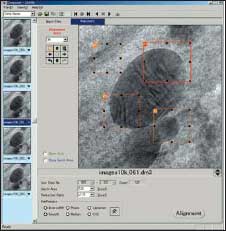 Recorder 拍摄的连续倾斜图像使用 Composer 进行对齐。传统方法需要基准标记,例如胶体金颗粒,但 Composer 允许在没有基准标记的情况下进行对齐。