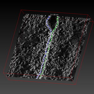 图像数据的精确对准是电子断层扫描中的一个挑战。 Composer通过计算倾斜轴的三维位置并分析精确的角度信息来解决这个问题。这使得可以通过简单的操作在短时间内进行高精度的三维重建。