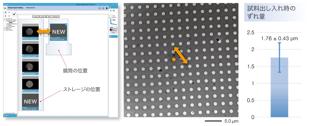更换样品时,样品不会意外旋转或移位。即使在镜筒和存储器之间来回移动时,也可以按原样应用称为“全局图”的整个样本的图像。
