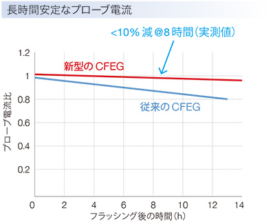 CRYO ARM™ 300 II 配备新型冷场发射电子枪 (CFEG)。这种新型电子枪可以产生能量宽度更窄、探测电流更稳定的电子束。因此,用户始终可以获得高质量的图像。