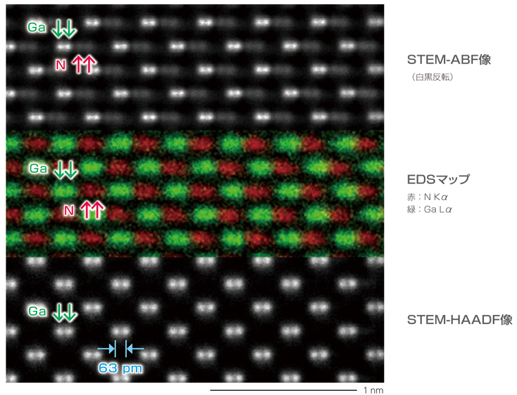 样品:GaN [211]设备:JEM-ARM300F2加速电压:300kV会聚半角:32 mrad插图)20 帧平均值