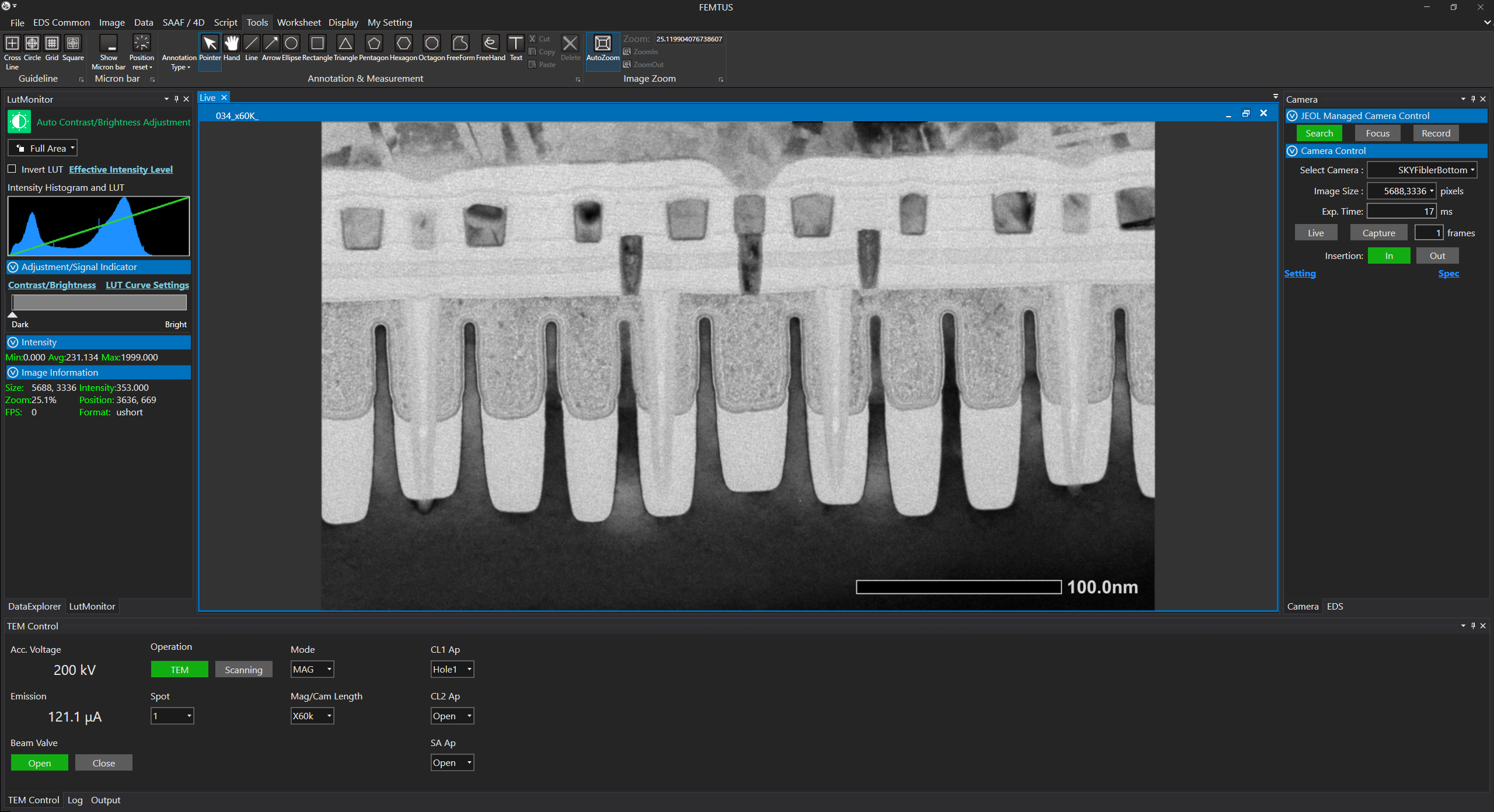 ·配备高灵敏度、低噪声、1900 万像素 CMOS 传感器,即使在少量入射电子的情况下也能呈现样品的细节并提供清晰的图像。·全局快门方法和高帧速率(58 fps /全像素模式)允许您在动态观察期间获取伪影受到抑制的图像系列。·集成到综合分析平台FEMTUS™中,提供用户友好的可操作性。