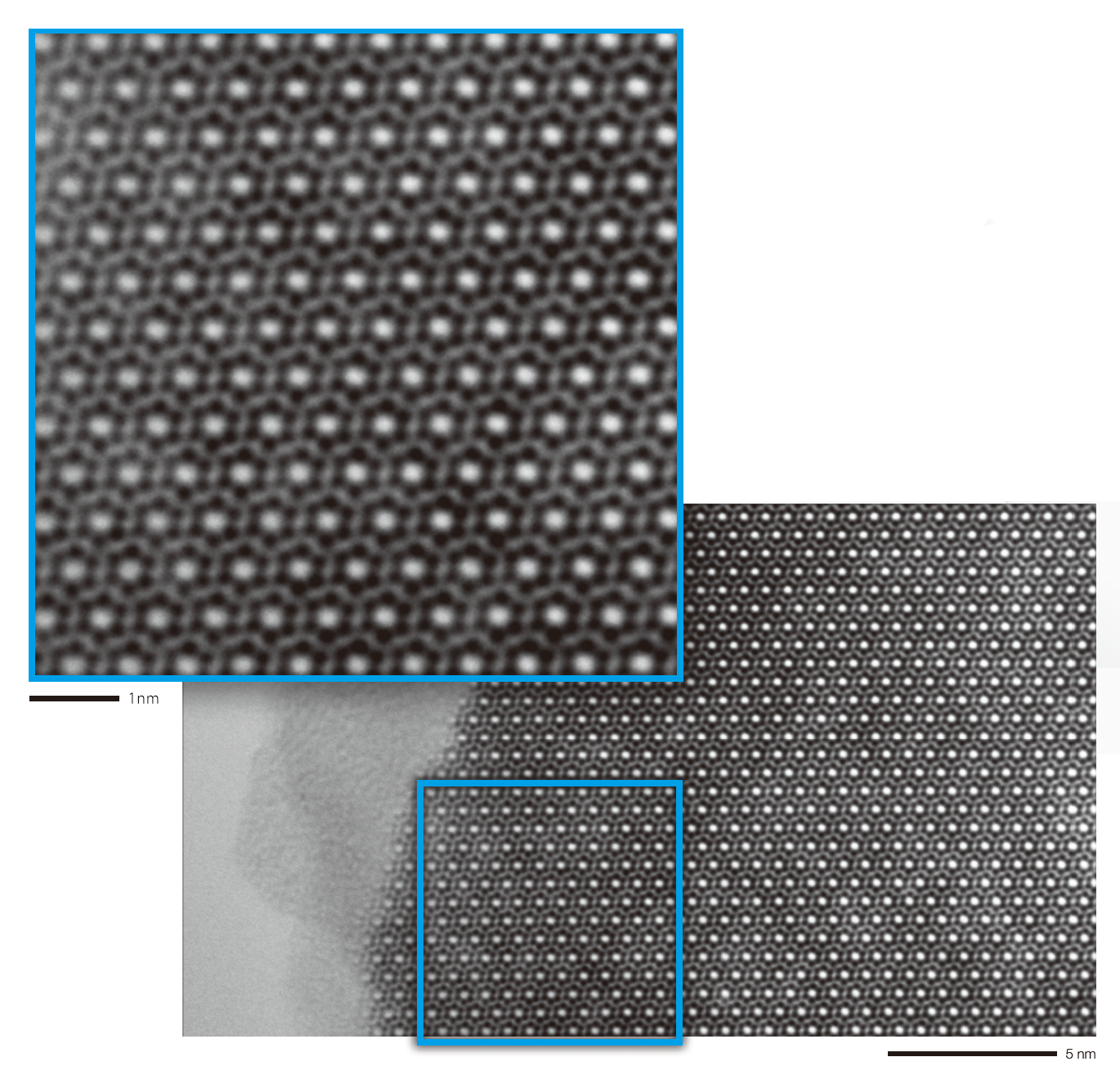 “NEOARM”配备了采用我们专有技术开发的冷阴极场发射电子枪(Cold-FEG)和能够校正高阶像差的新型球面像差校正器(ASCOR),不仅在200 kV的高加速电压下而且在30 kV的低加速电压下实现了原子分辨率观察。此外,我们还开发了独特的像差校正算法,并配备了自动执行快速、准确的像差校正的系统。这提供了高通量原子分辨率观察。