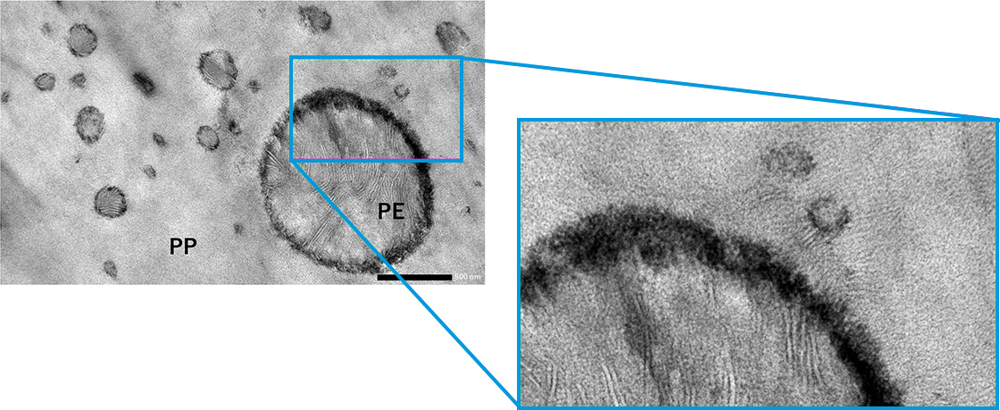 聚乙烯 (PE) 和聚丙烯 (PP) 的 TEM 图像