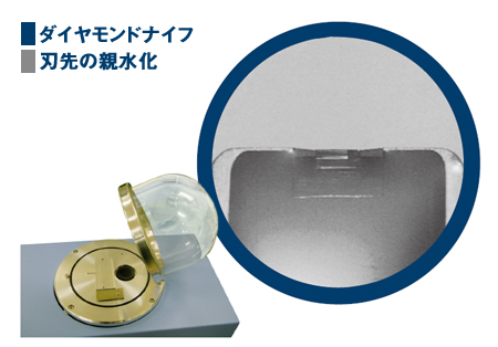 金刚石切削刃容易变得亲水。这样可以防止船内的水溅到刀尖处,方便调节水位。
