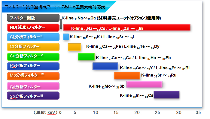整个能量范围内的高灵敏度分析 多达 9 种过滤器*和样品室排气装置可实现整个能量范围内的高灵敏度分析。