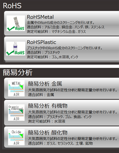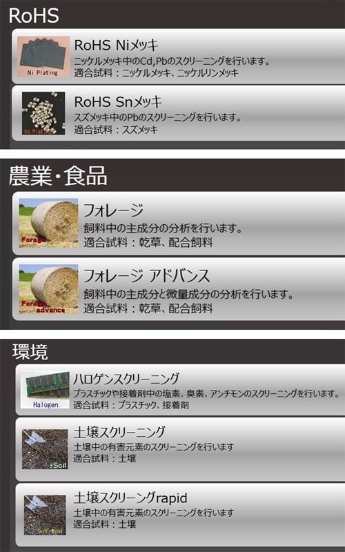 | 分析软件 | 定性分析(自动定性、KLM 标记总和峰值显示、频谱搜索)定量分析(批量FP法、校准曲线法)RoHS分析溶液(Cd、Pb、Hg、Br、Cr)简单分析解决方案报告撰写软件 |