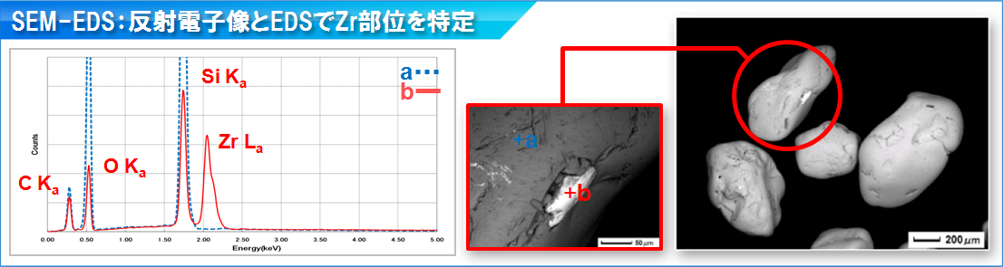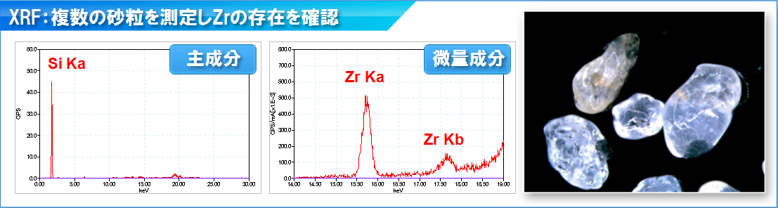通过使用XRF,可以快速确定砂粒群中是否含有Zr。此外,通过使用SEM EDS,可以识别存在Zr的砂粒。