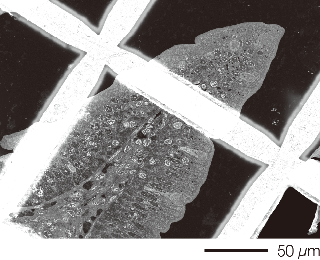 使用UFC样品台的超薄切片图像(70度倾斜观察)