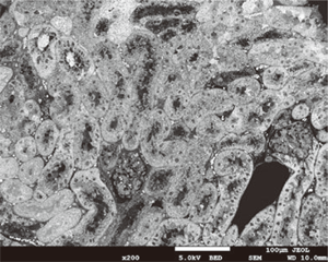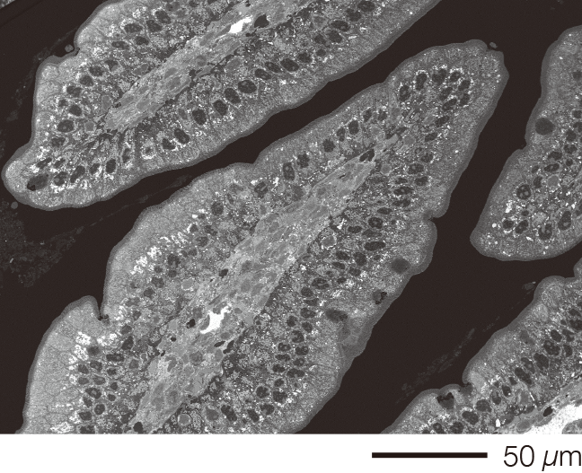 使用超薄切片法的观察示例(SEM图像设备:JSM-7800F样品:小鼠肾细胞)