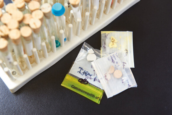 弗吉尼亚法医科学部中央受控物质实验室每月收到 1,000 到 1,200 包(犯罪)证据。这些证据有多种形式(白色粉末、植物残渣、胶囊、片剂等),每包包含多个待分析样本。有时这些是注射器、秤、管子或其他吸毒和交易用具。所有这些样本都是疑似毒品案件的证据,鉴定工作就落在了鲍勃·斯坦纳和他的同事的肩上。