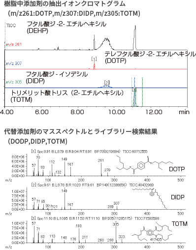 - 可以高效、高灵敏度地筛选受 RoHS 指令管制的树脂中的邻苯二甲酸酯。还可以检测最新的替代添加剂。
