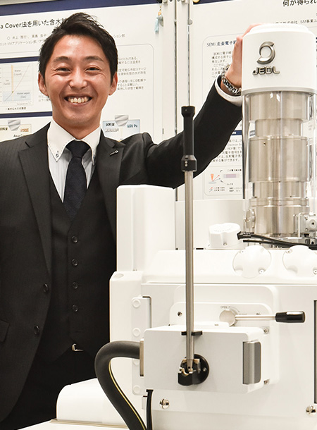 SEM 曾经用于研究目的,现在被许多公司用于测量和检查目的。 SEM可以观察从毫米级到纳米级的样品表面形貌,还可以进行元素分析。随着材料和零件变得越来越小型化,SEM 现在在生产现场不可或缺。因此,需要将SEM开发为一种能够快速获取数据、可供任何用户使用的工具,并且操作性和界面日益完善。YY,SI促销办公室经理,主要处理SEM,曾在东京和筑波分公司从事销售工作,然后于2017年4月调到促销办公室,利用丰富的经验支持销售。“在销售通用型 SEM 时,我支持业务谈判、宣传公关并为客户安排演示。到目前为止,人们必须来到我们位于昭岛的总部或大阪分公司进行演示,但这对于住得很远的客户来说很不方便,所以在 2017 年,我们引入了使用网络会议系统的网络演示,由我负责。”SEM 是一种昂贵的设备,因此有必要检查它实际上可以做什么以及使用起来有多容易。因此,即使是现在,最后一步也是访问 JEOL 通过演示来确认产品,但在此之前,我们已经引入了网络演示,作为轻松体验演示的方式。