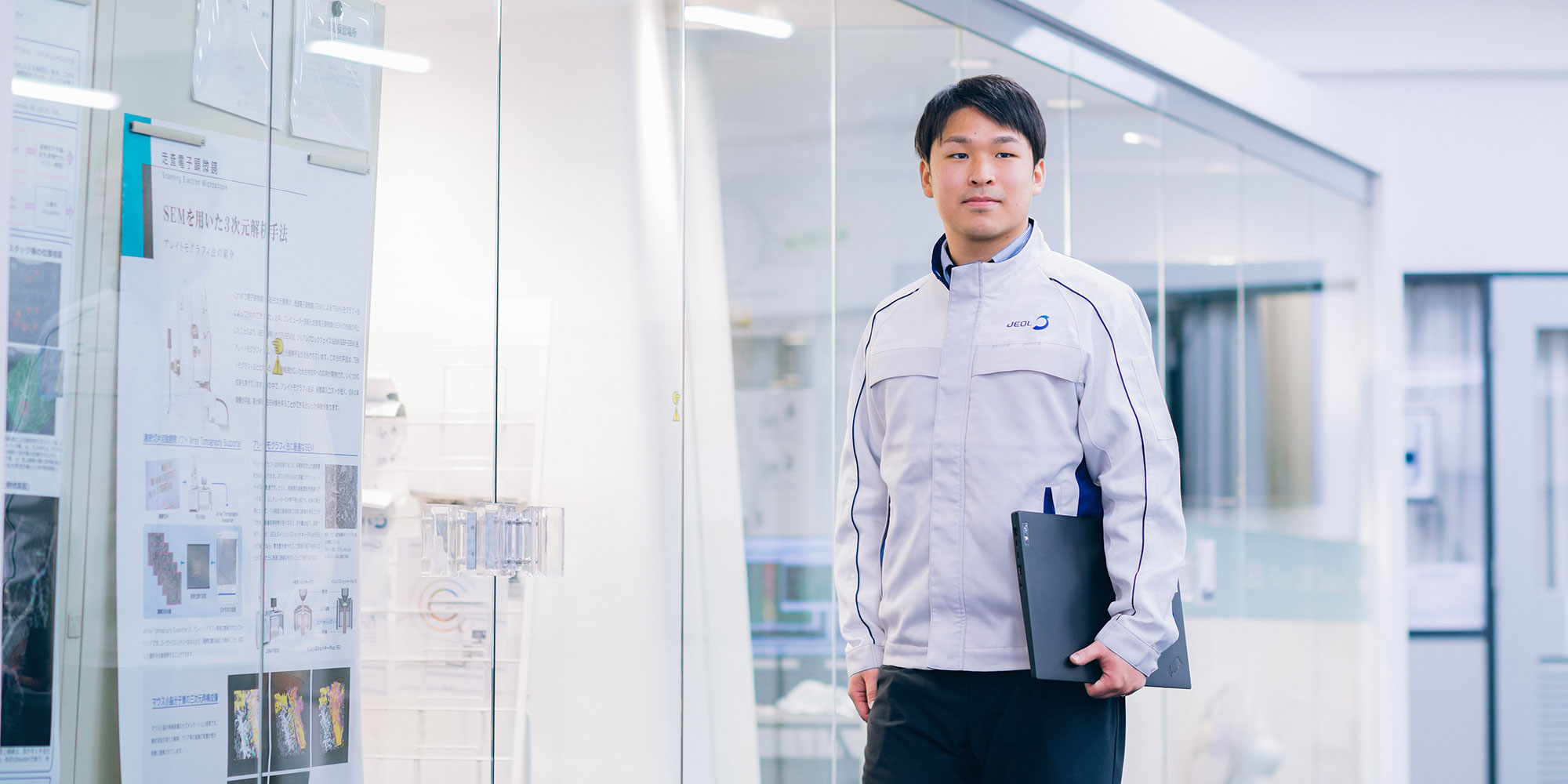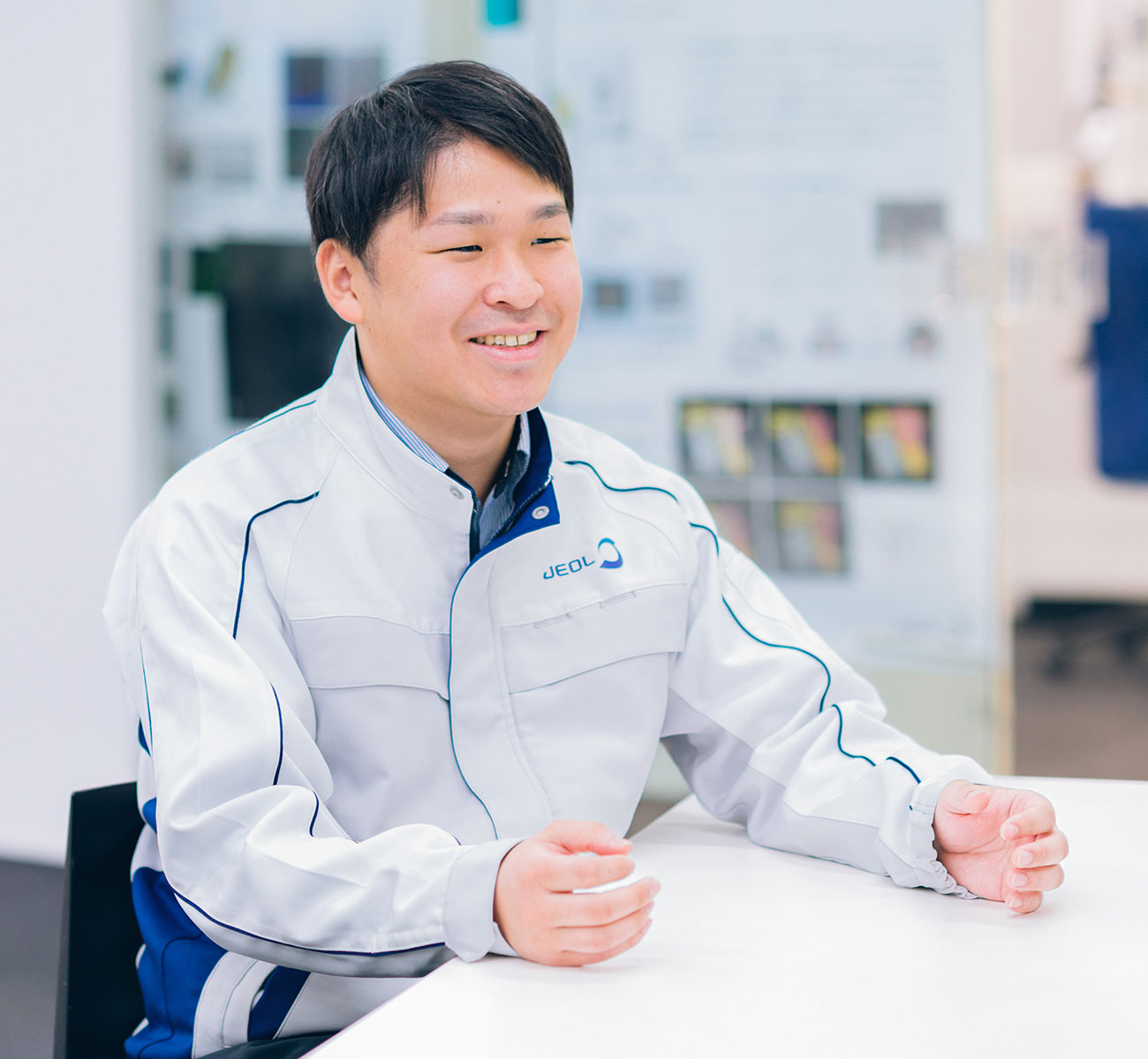 在研究生院,我在硕士课程中从事燃料电池研究,并使用 JEOL 电子显微镜进行该研究。在找工作的过程中,我考虑了各种制造商,因为我想涉足制造业。其中,JEOL的内部氛围最好。