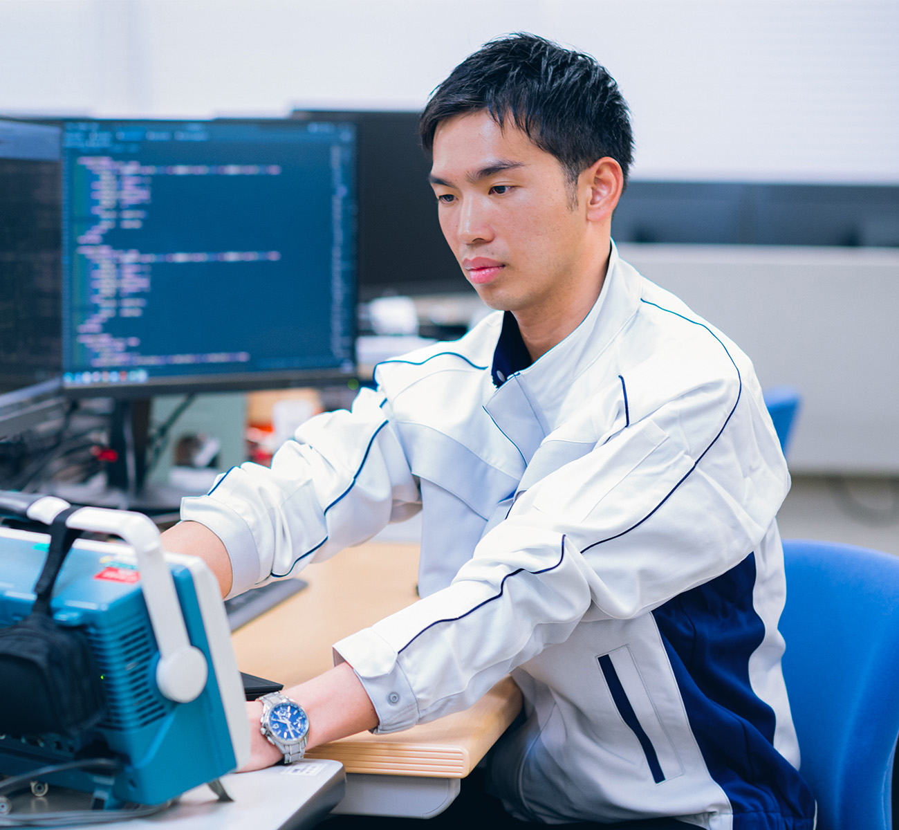 我仍然无法忘记在公司第二年的经历,当时我自己设计的第一块板被集成到设备中并成功发布。当时,现有设备中使用的零件已停产,我的任务是设计一块板以满足新规格。发布之路并不平坦,我们面临着许多挑战,例如与制造现场的协调以及检查零件的兼容性。而且,在引进实机的时候,出现了意想不到的故障,所以在前辈同事的支持下,我们不断摸索才顺利完成。我觉得自己给生产部门的人带来了特别沉重的负担,但我记得前辈同事鼓励我说:“这是每个工程师应该走的路。”我还清楚地记得设备成功发布时的喜悦和欣慰,我觉得通过这次经历,我作为一名工程师得到了很大的成长。