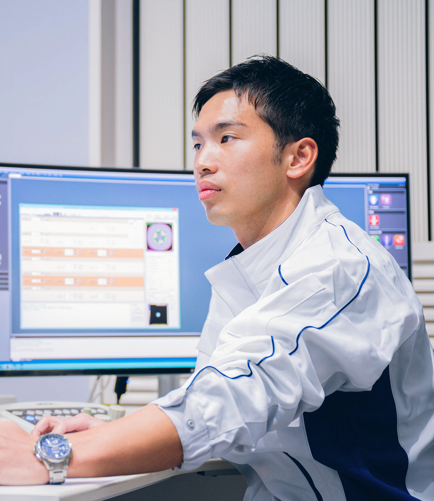 说实话,在我开始找工作之前,我对 JEOL 及其电子显微镜一无所知。然而,有一天,一位在 JEOL 工作的资深同事访问了我的研究生院,并有机会与他直接交谈。当我听前辈谈论技术和工作时,我发现内容很吸引人,逐渐对JEOL的技术产生了兴趣。我找工作时最看重的是“人”。我一直在想的不仅是我面前的人,还有我面前的人,我通过工作能为谁做出什么样的贡献。在JEOL,我对参与尖端技术并支持多个领域的研究的想法非常感兴趣,这反过来又可以帮助很多人。此外,我决定加入该公司的主要因素之一是我在求职过程中遇到的 JEOL 招聘经理很友善地给了我建议,让我感受到了重视每一位员工的温暖公司文化。