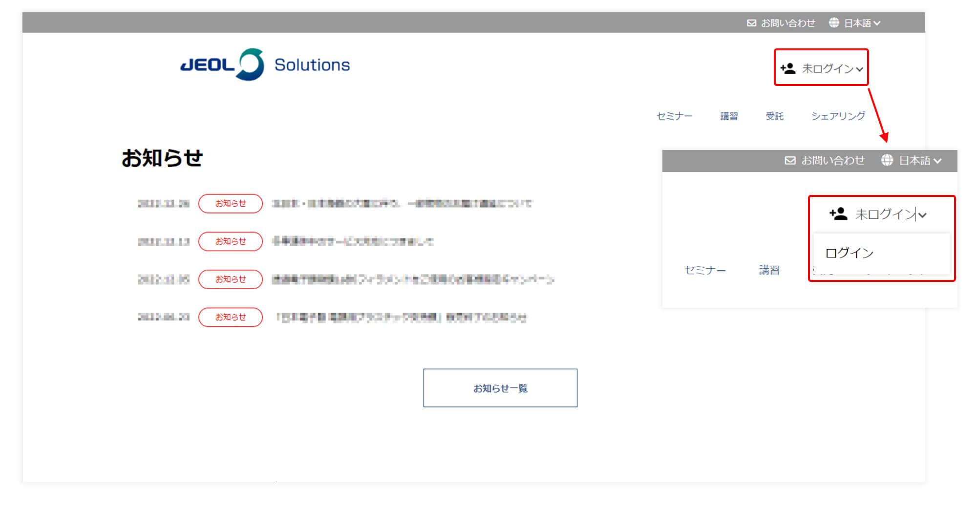 如果您在“JEOL Solutions”页面上点击“未登录”,则会显示“登录”,因此请从此处进入登录屏幕。