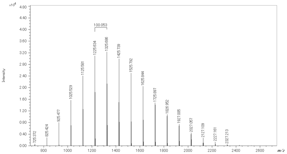 | 分子量信息 | Mn1498,中号w1559,D 1041 | 质谱中观察到的分子量分布信息 这不是示例信息 |