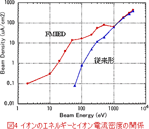 图 4 显示了 FMEID 和传统类型的离子电流密度相对于离子能量的变化。FMEID 可以通过用 20eV 或更低的离子照射样品来中和电荷,而不会溅射样品。