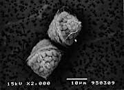 螺旋鱼腥藻背向散射电子图像(鱼腥藻荚可见)无化学固定×1,500 |