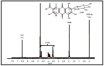 - qNMR能够测定胭脂红酸以及胭脂虫红染料中胭脂红酸的纯度。