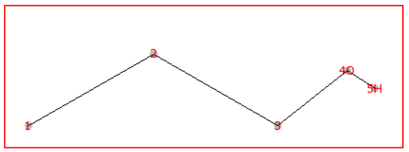⑬ 参考⑧至⑫,在原子号4上添加单键,并将原子号5改变为氢原子。⇒ 1-丙醇的羟基(-OH)被创建。
