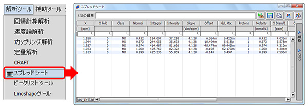 ⑥ 从菜单栏中选择[分析工具] - [电子表格]。