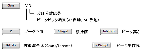 ★ 重新波形分离计算您可以更改峰位置、峰高和峰半宽值并再次执行波形分离计算。