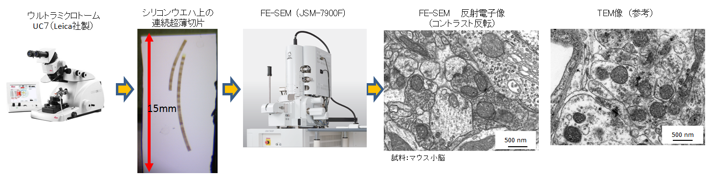 - 通过醋酸双氧铀或柠檬酸铅后染色可以增加连续切片的对比度,因此不需要NCMIR法等特殊的样品固定方法,样品可以使用普通的双固定环氧块。