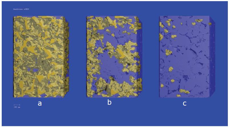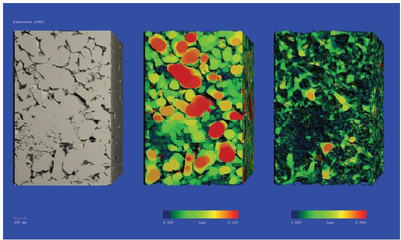有关孔隙率和渗透率的信息对于表征材料非常重要。使用μCT进行孔隙评估获得的参数通常是孔隙率、平均孔径和孔径分布。在这里,我们表明,可以通过在数据上模拟汞侵入来量化材料的渗透性并获得空隙连通性,从而进一步表征结构。在此示例中,我们评估了用作混凝土骨料的砂岩,但它也可以应用于多孔材料样品。