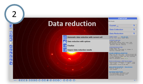 CrysAlis专业版ED 支持使用 AutoChem 自动分析电子衍射数据。此外,可以使用如下所示的简单菜单可靠且高效地执行手动分析。合并和分析多个测量数据也很容易。