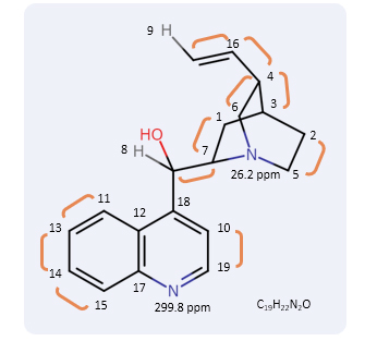 中:由 2 个键分隔的 CH 之间的连接,使用 JNM-ECZL 500R 从辛可尼定的编辑 H2BC NMR 谱中得到证实