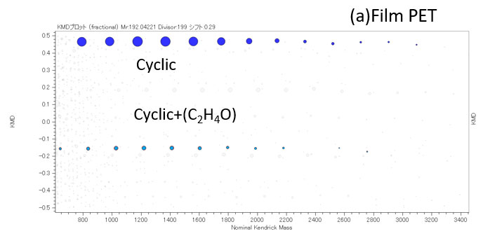 サンプルには、市贩のfiルムPET状と板状PETをそれぞれ冷冻粉砕し、10毫克/ mLの濃度でHFIPに溶解した。マトリックスに2′,4′,6′-トリヒドロキシアセトフェノン (THAP)使用JMS-S3000(JEOL制造)的螺旋正离子模式获得质谱。 msRepeatFinder V6 (manufactured by 天游线路检测中心) was used for KMD analysis