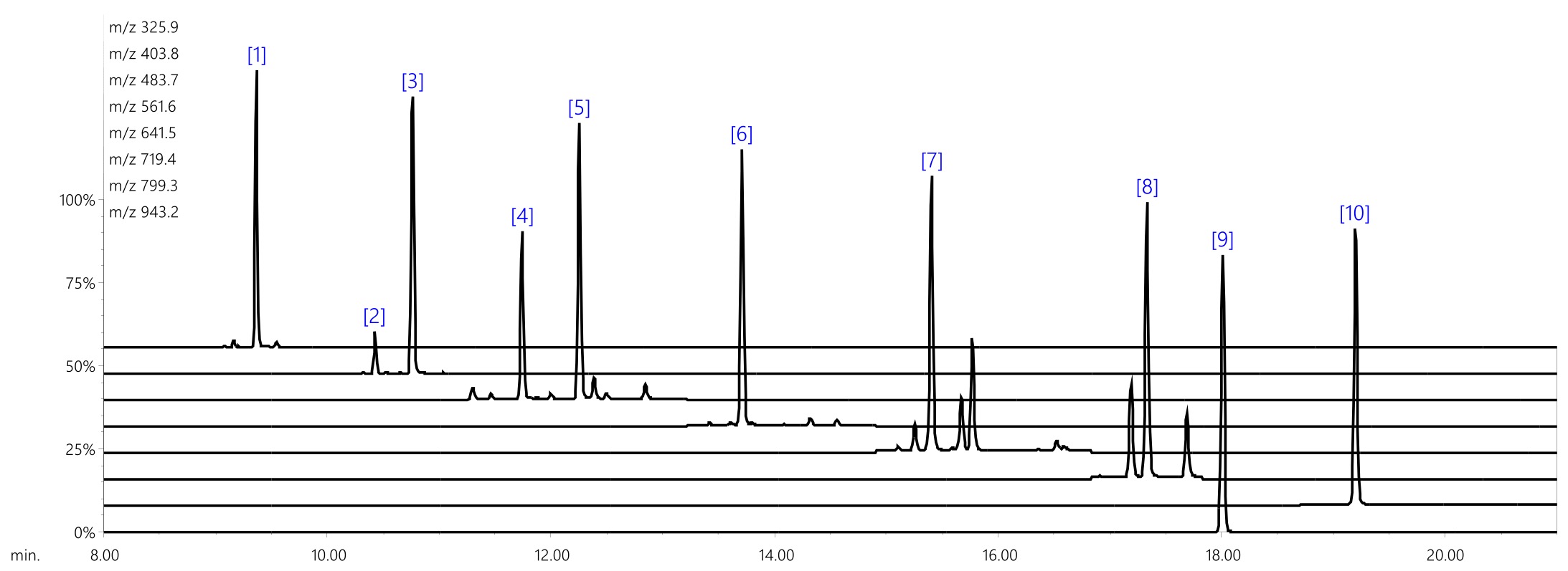 图 1 ERM®-EC591 中每种成分的 SIM 色谱图