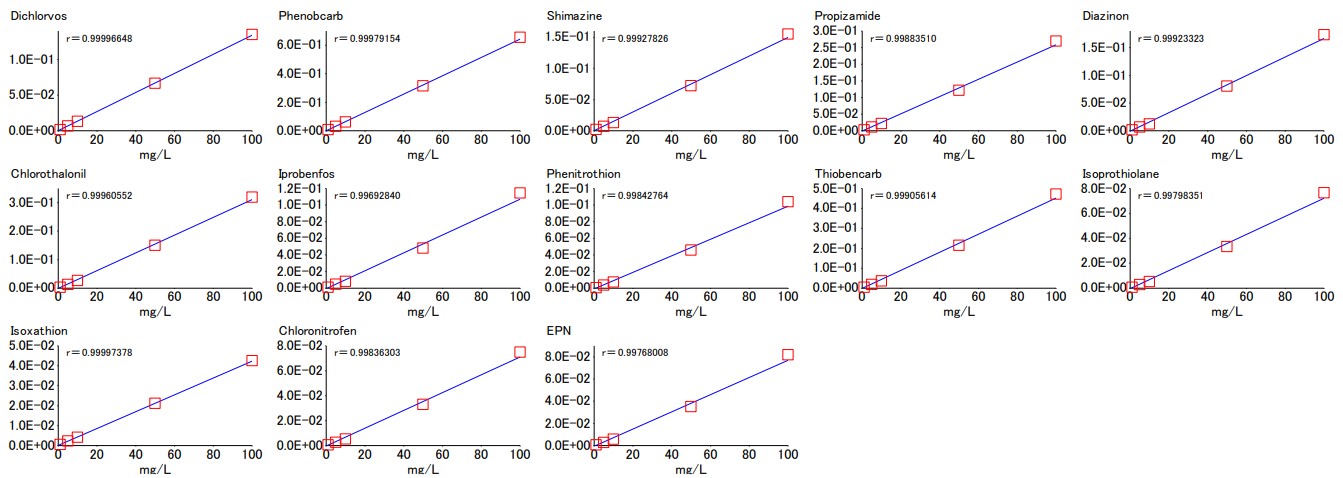 32。 13种农药成分的校准曲线和重现性的确认